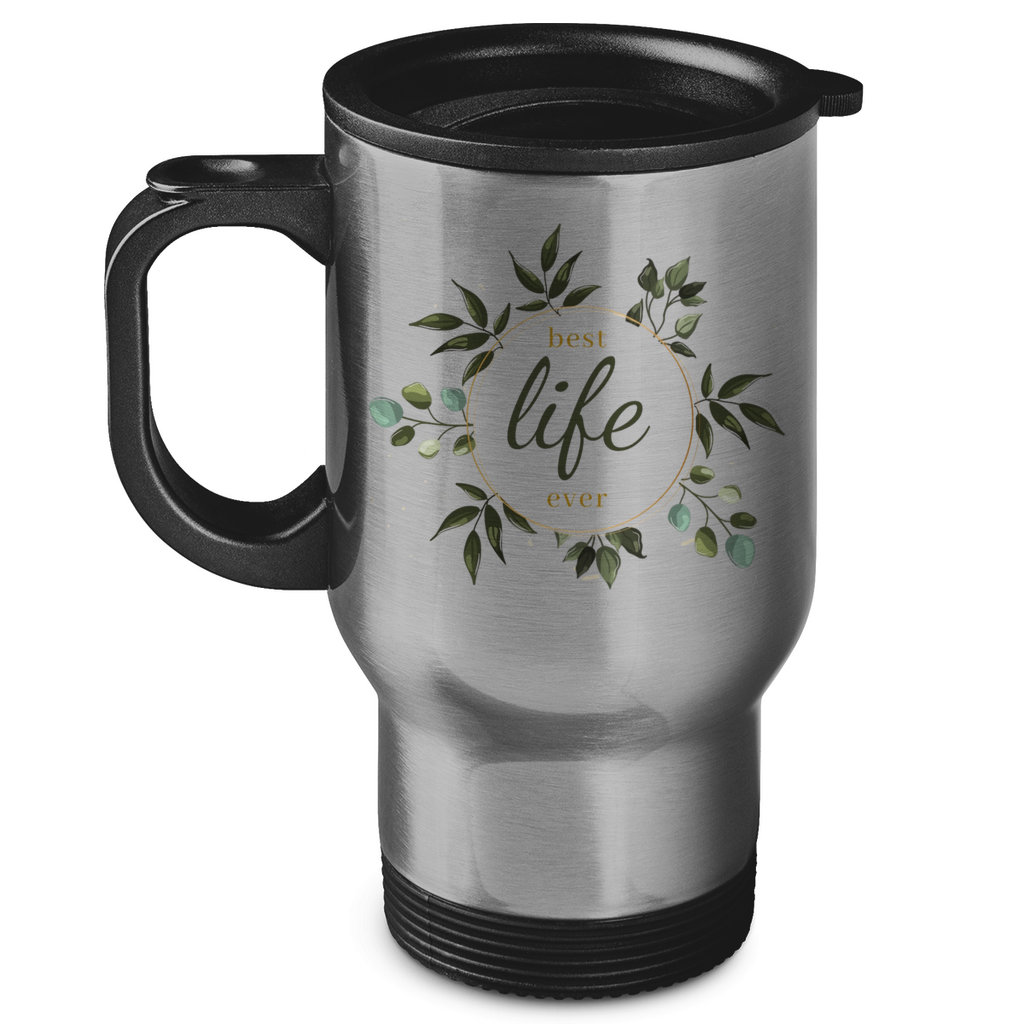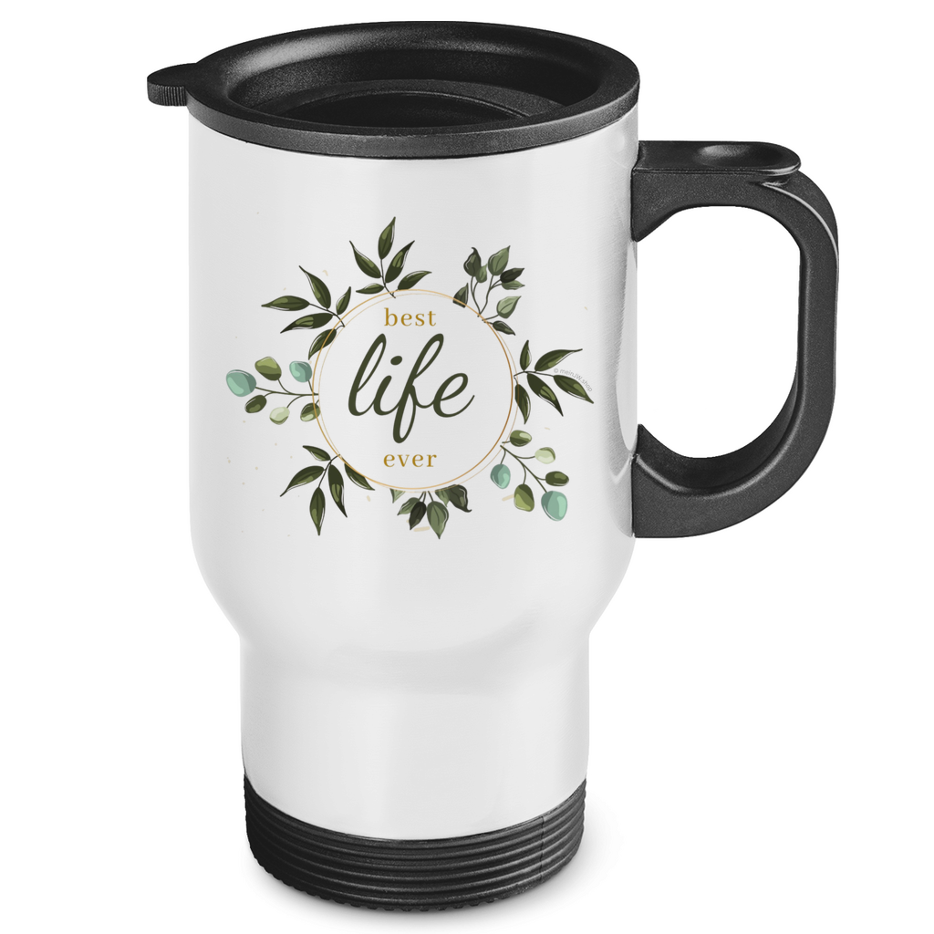 Unbeschwerter Trinkgenuss! Wer seinen Tee oder Kaffee gerne unter freiem Himmel genießt, ist mit dem Edelstahl-Thermobecher gut beraten. Dieses Trinkgefäß ist robust, leicht, stoßfest und liegt durch den Griff prima in der Hand. Der Kunststoffdeckel sitzt dank des Steckverschlusses fest auf dem Becher. Im Deckel befindet sich ein Drehgriff, mit dem man die Trinköffnung und Luftöffnung durch 45 Grad Drehung öffnet und schließt.