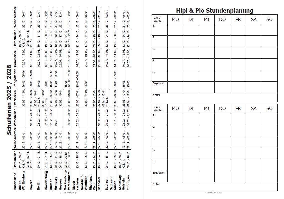 • 1 Seite mit 2 Wochenplänen zum Planen der Dienstzeiten