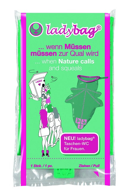 Das Taschen-WC für Frauen ... Wenn keine andere Toilette in der Nähe ist. Ladybag ist sofort einsatzbereit.