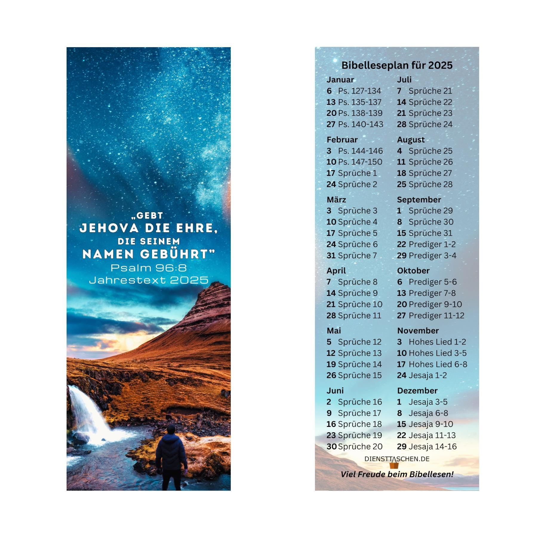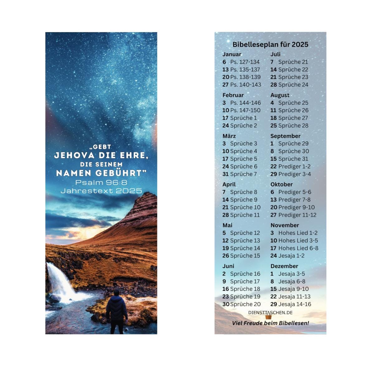 1o Lesezeichen mit dem Jahrestext 2025 und Bibelleseplan