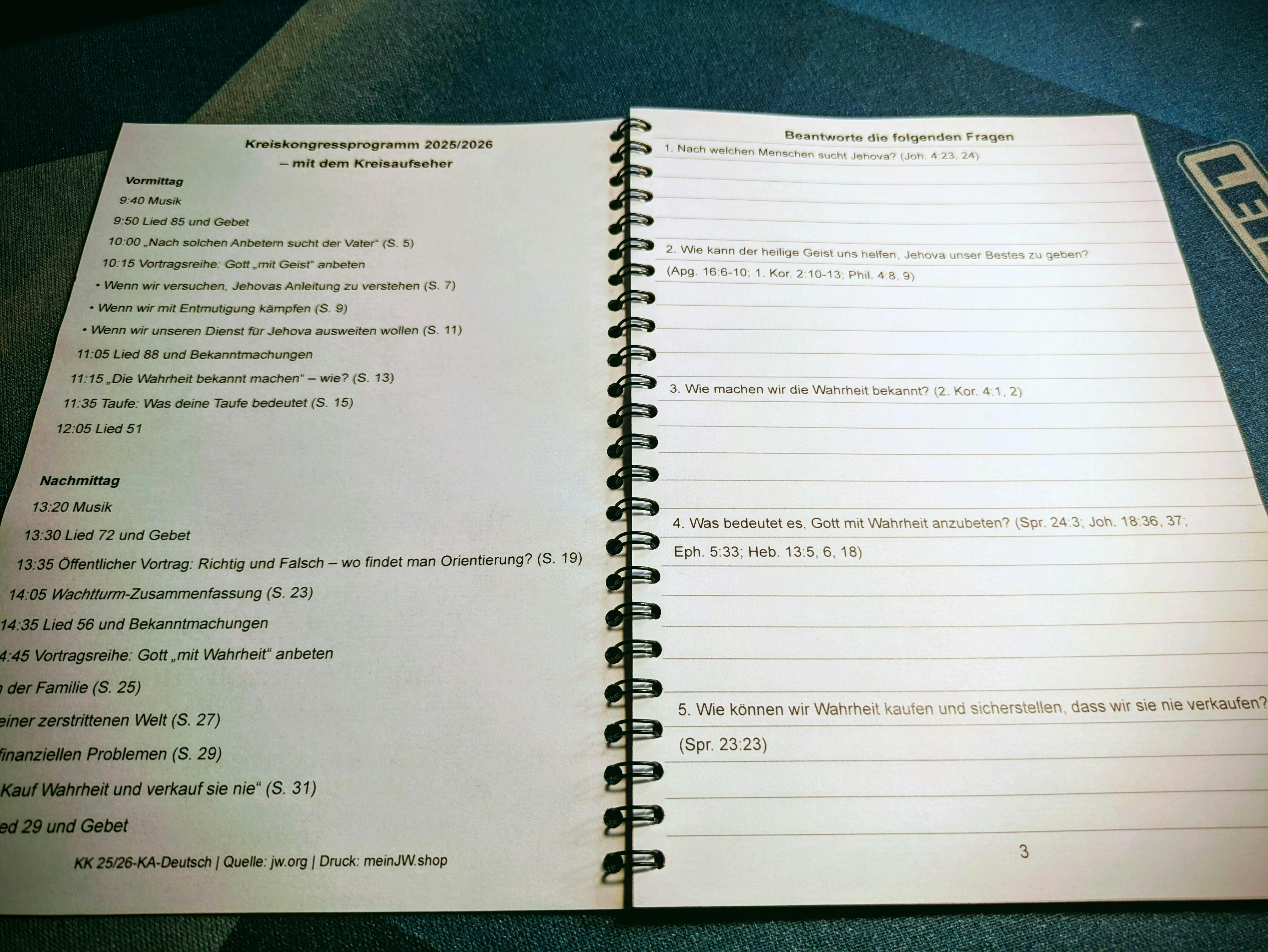 Ein Notizbuch für beide Kreiskongresse-Teile 2025/2026