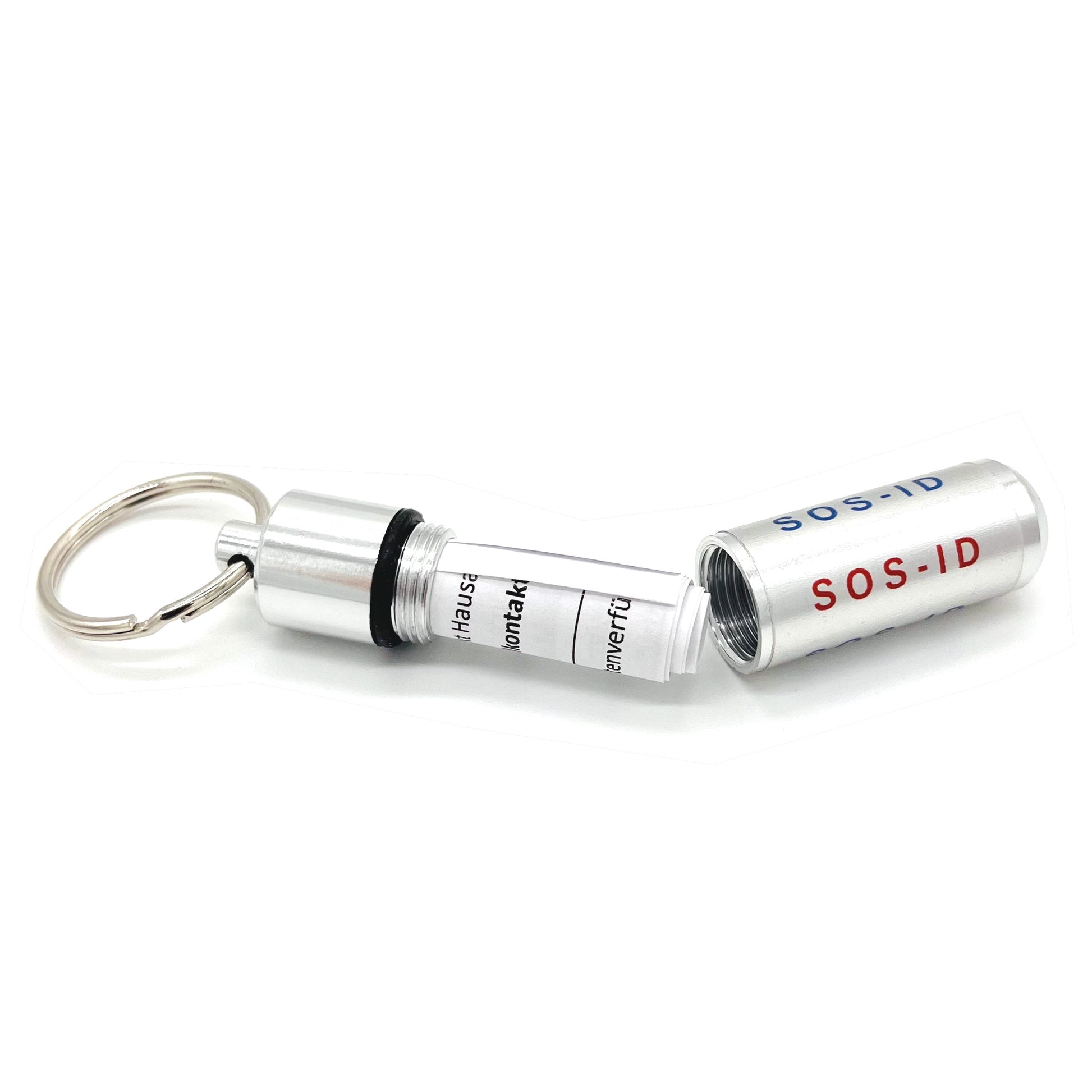Wasserdichte SOS-Kapsel für wichtige Information im Notfall. So eine Kapsel kann Leben retten, falls man im Notfall gefunden wird, sich selbst aber nicht verständigen kann. Die SOS-Kapsel kann als Anhänger um den Hals gehängt werde oder mit einem Karabinerhaken z.B. an der Kleidung befestigt werden. Aber am besten so platziert das sie im Notfall auch gefunden wird.
